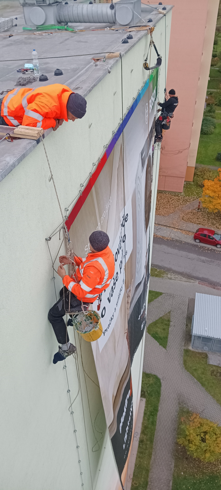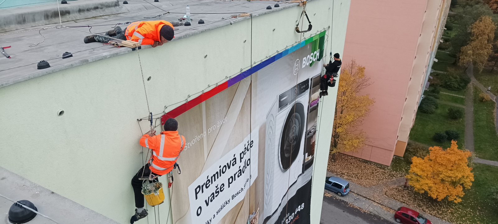 Nabízíme bezpečnou a efektivní montáž reklamních plachet na budovy, a to včetně instalace velkoplošných bannerů. Pracujeme s maximální pečlivostí, aby byla reklama pevně uchycena a zviditelnila váš podnik nebo událost.